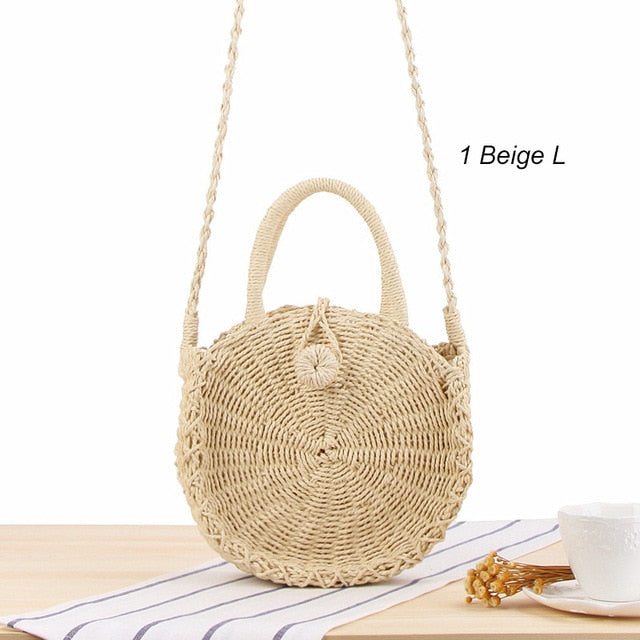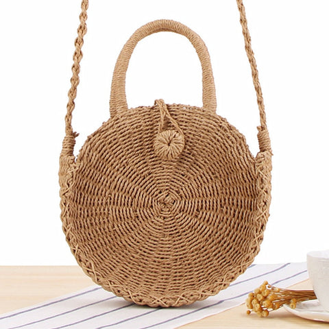 feature: round straw bag